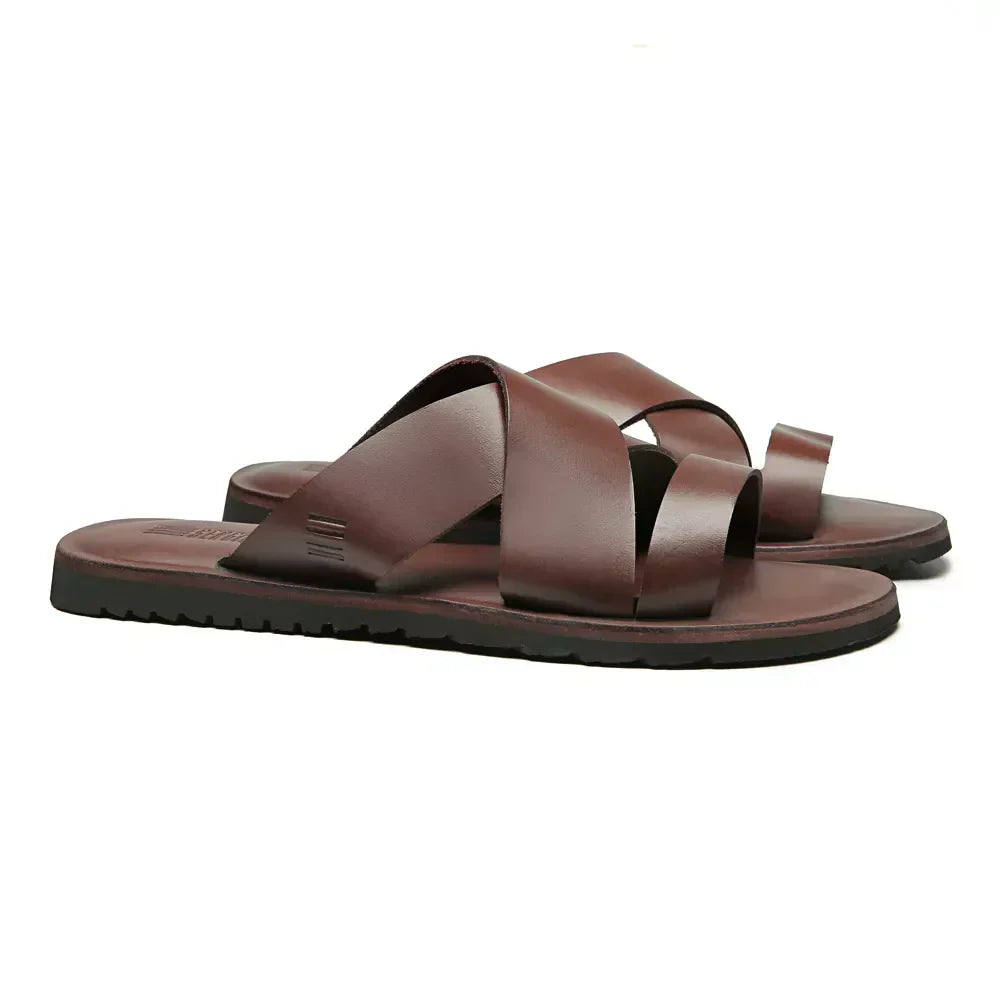 • Sandália masculina em couro natural de qualidade superior• Possui palmilha em couro• Solado de borracha com total aderência para maior conforto• Acabamentos e costuras feitos a mão